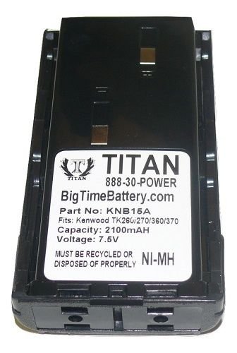Studio : BatteryJack Publisher : BatteryJack Binding : Misc. Product Description KNB-14A KNB-15A 2.0AH Battery for Kenwood TK260G TK-360G TK-272G TK-372G TK-2100 Titaniumium is a registered trademark with the United States Patent and Trademark Office. Brand New 7.2V 2100mAh Ni-MH Battery KNB-14, KNB-14A, KNB-15, KNB-15A, KNB-15H Compatible This battery works with the Following TK-260, TK-260G, TK-270, TK-270G, TK-272, TK-272G, TK-278, TK-278G, TK-360, TK-370, TK-370G, TK-372, TK-372G, TK-373, TK-378, TK-378G, TK-388, TK-388G, TK-2100, TK-2102, TK-2107, TK-3100, TK-3101, TK-3102, TK-3107 All Titaniumium products are brand new and tested before shipment. Only use Highest Grade Cells All packs meet or exceed OEM QC testing Over 95 combined years experience in the rechargeable battery industry * Manufacturer Plant is ISO9002 Certified* 18 MONTH WARRANTY 0