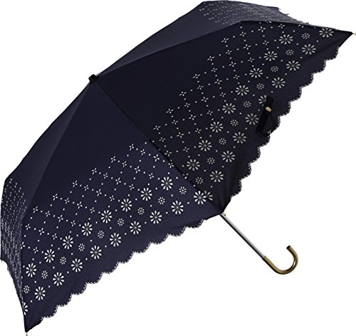 -. Title : プラスニコ 折りたたみ傘 手開き 軽量 フラワー レース スカラップ ネイビー 全2色 6本骨 50cm 12321