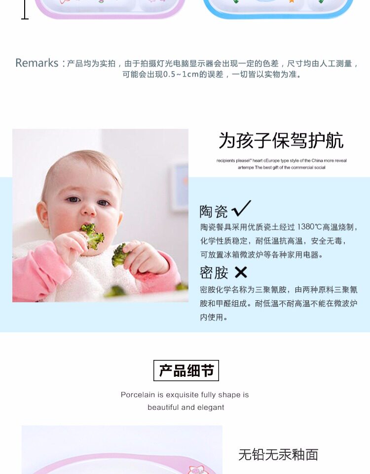 儿童餐盘宝宝餐盘 分格盘多格餐具 创意可爱卡通无毒陶瓷分隔餐盘