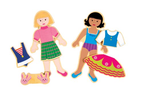 - Feature : Includes 2 magnetic wooden dolls, 35 sturdy magnetic clothing pieces, and vinyl carrying bag / Beautifully illustrated with hand-painted artwork / Set comes in a convenient carrying case with great snap pockets / Great for travel / For ages 3 years and up