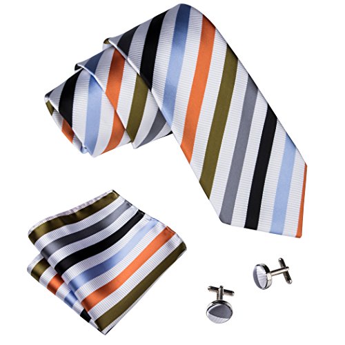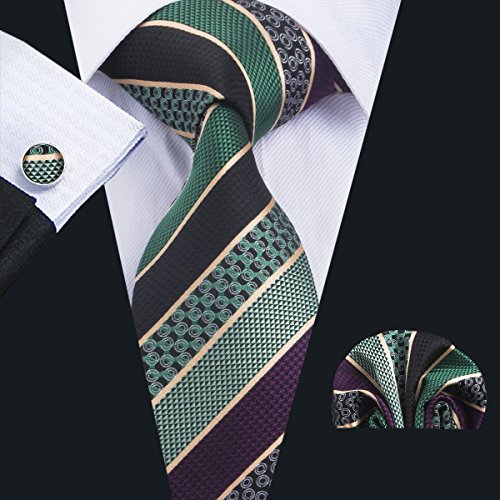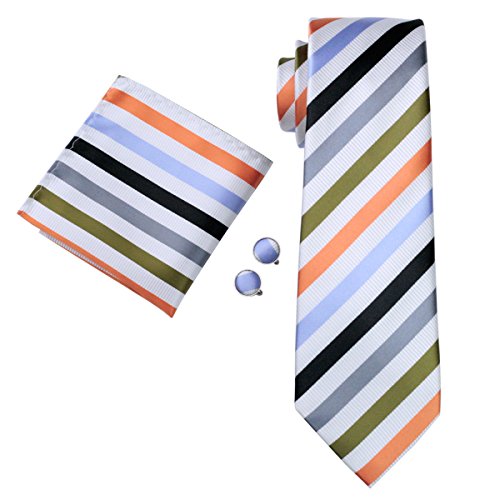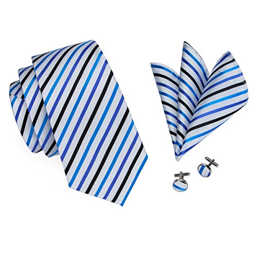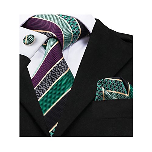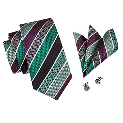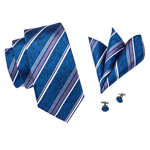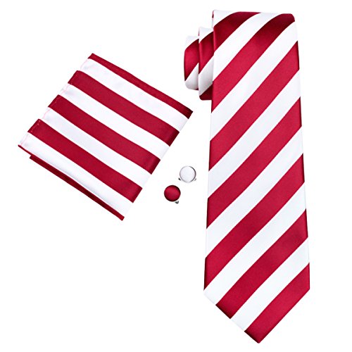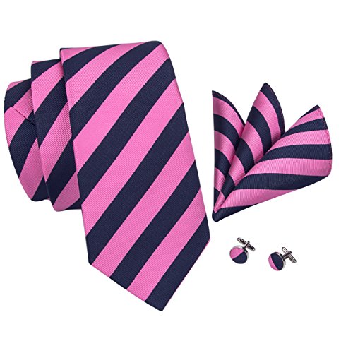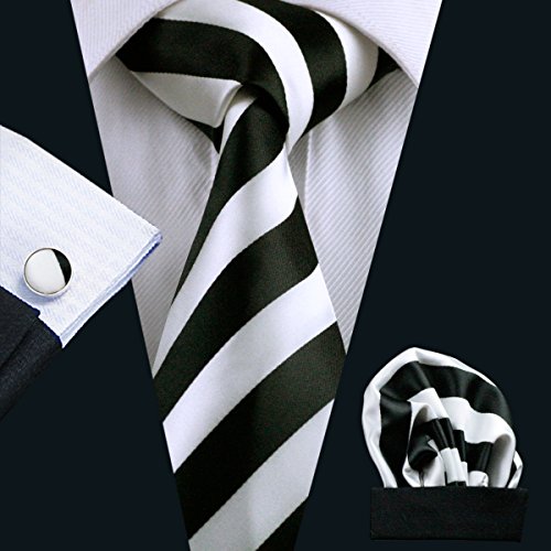 Why choose us? Material: Silk Craft: Jacquard Woven Size: 59.06"(150cm) in length and 3.35"(8.5cm) in Width Package included: necktie hanky 2 cufflinks