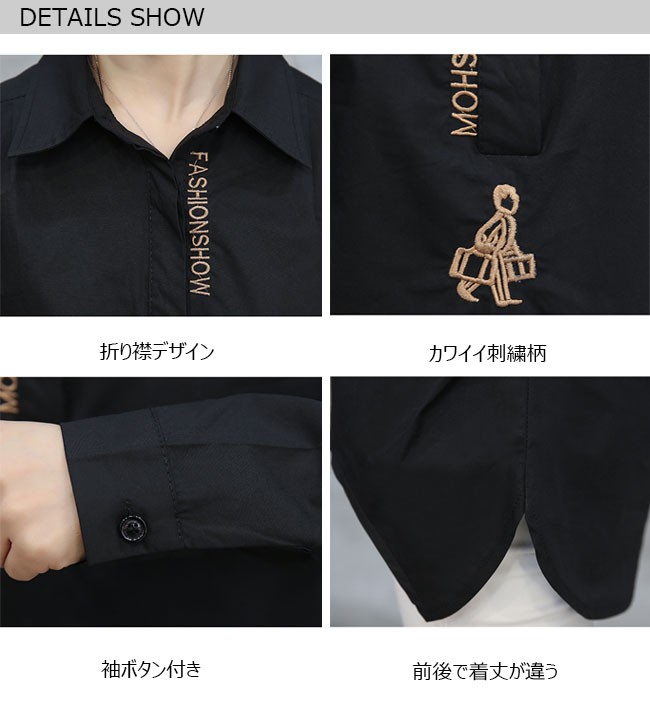 | 商品名 | 刺繍シャツ 長袖シャツ ブラウス レディース 長袖 スキッパーシャツ ワイシャツ 無地 大きいサイズ ゆったり 体型カバー フェミニン |