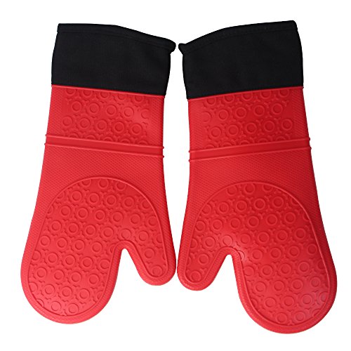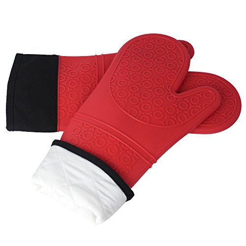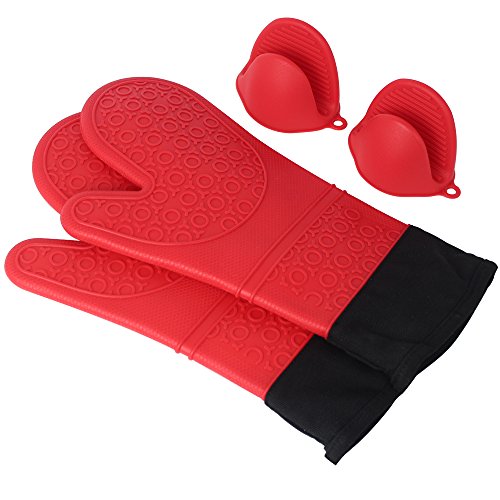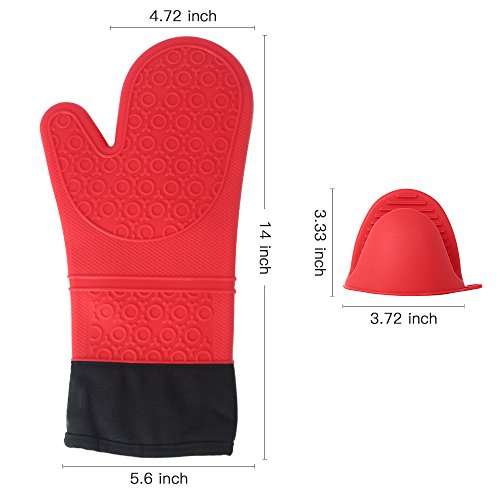 Silicone Oven Mitts 1 Pair of Quilted Cotton Lining - Heat Resistant Kitchen Gloves,Matching Mini Oven Mitts(Red, 2 Pair) (Y)