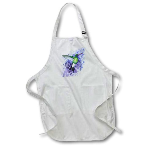 3dRose apr_20896_1 Humingbird on Blue Full Length Apron with Pockets, 22 by 30-Inch, White
