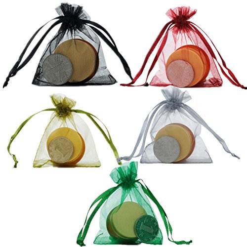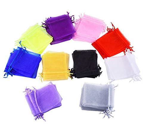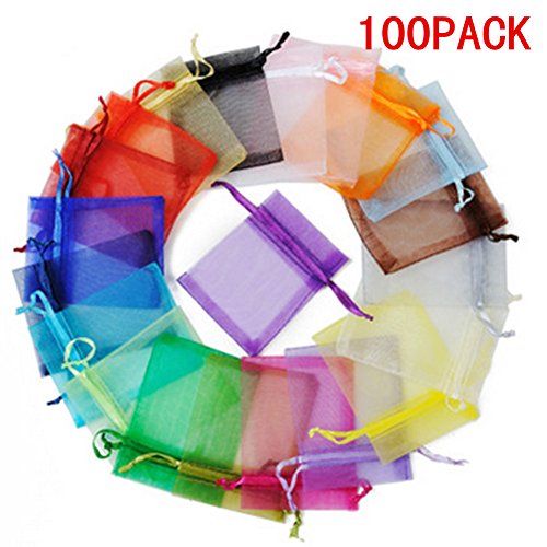 Lsgoodcare 100PCS 2.76"x3.54" Assorted Colors Sheer Drawstring Organza Gift Bags Jewelry Pouches Wedding Party Festival Christmas Favor Candy Bags