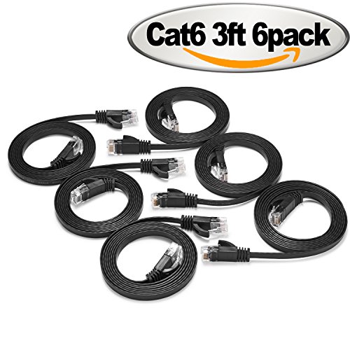 Cat 6 Ethernet Cable Black 3 ft ( 6 Pack ) - Flat Internet Network Cable - Jadaol Cat6 Ethernet Patch Cable Short - Cat6 Computer Lan Cable With Snagless RJ45 Connectors - 3 feet Black 6 Pack