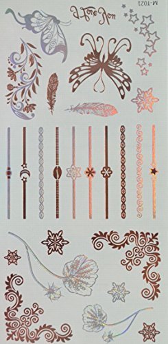 (GGSELL)/Body/Body Paint/DIRECT FROM USA/GGSELL Pink and silver Metallic Temporary tattoos Jewelry design, feathers, butterflies, flower...