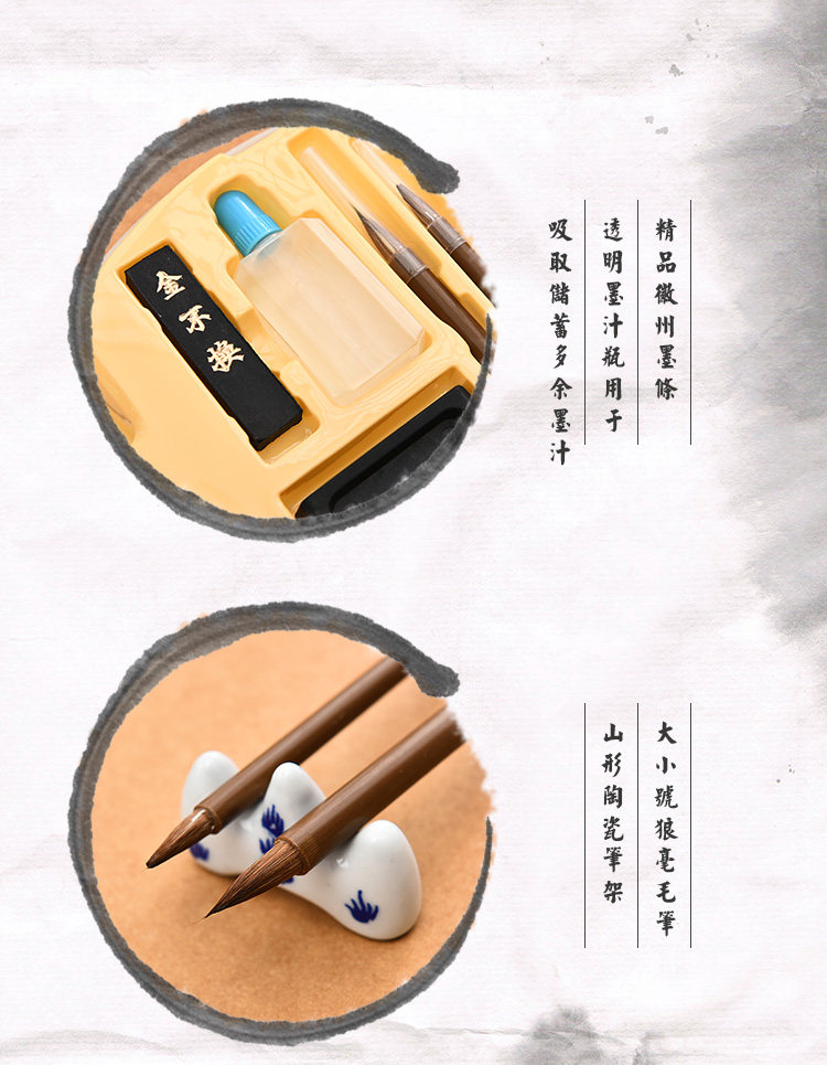 毛笔砚台笔架写字帖书法套装创意初学者成人儿童文房四宝精品文具