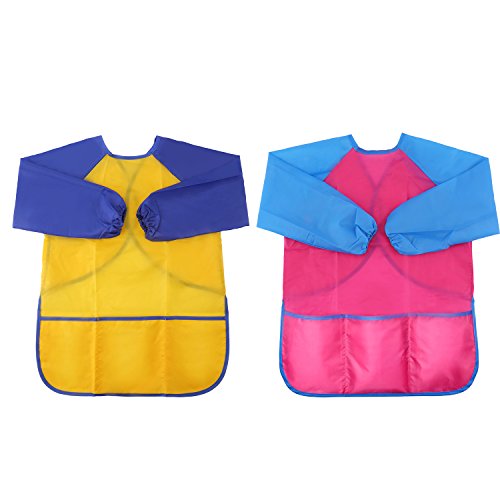 Design:The aprons are specially designed with long sleeves and 3 roomy pockets which can hold paintbrushes,snacks,paper towel and so on.