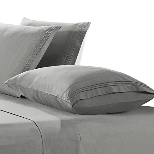 Bed Sheets Set – Hotel Premium Brushed Super Soft Microfiber, Egyptian Quality Collection with Deep Pocket - 4 Pieces Fully Elastic Fitted, Fitted & Flat Sheets, Pillow Case. Full Grey