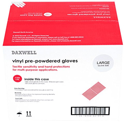 Daxwell Vinyl Glove, Powdered, Large, Clear (1,000 Gloves)