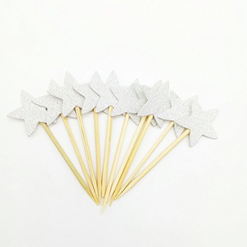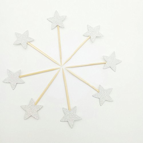 Paity Star Cupcake Toppers Silver Glitter Twinkle Little Star Party Boys 1st Birthday Cupcake Toppers Glitter Party Supplies New Years Eve Party Wedding Cupcake Topper /set of 40