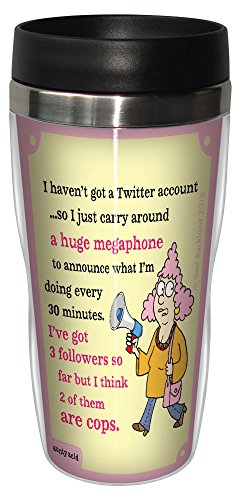 Tree-Free Greetings 16-Ounce Sip 'N Go Stainless Lined Travel Mug, Aunty Acid Twitter Account (SG78580)