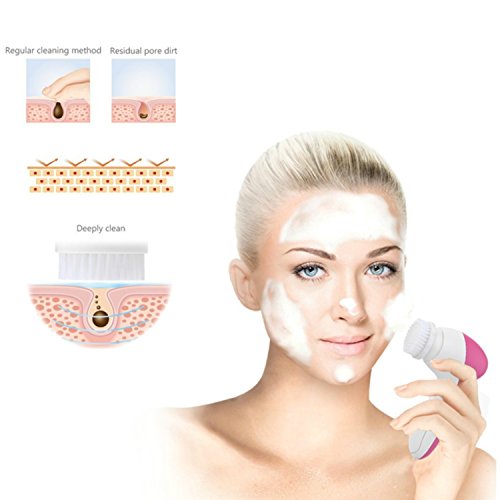 Waterproof Exfoliating Brush 5-in-1 Deep Cleansing Facial Brush Massager Blackhead Remover Treats Acne Ingrown Hairs Razor Bumps Bikini Area Sensitive Skin Microdermabrasion Device - Gift Item