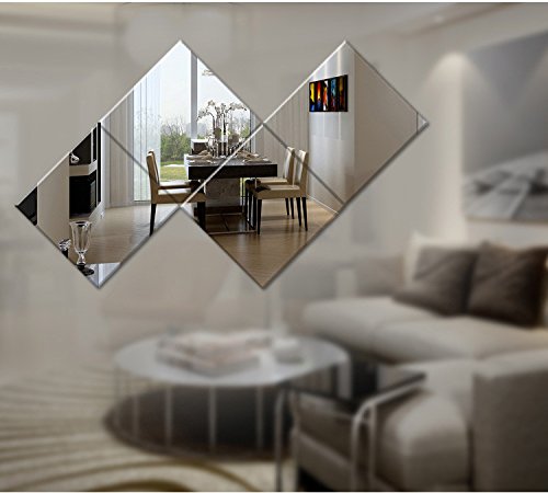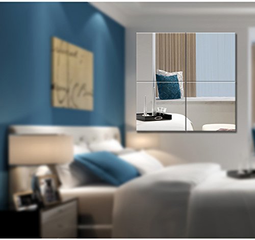 Display4top Acrylic silver Mirror Wall Sticker Living Room Bedroom Ceiling Mural Decal Home (12X12inch)4PACK