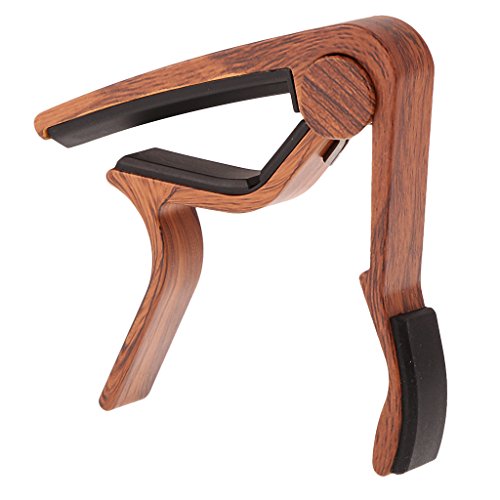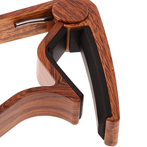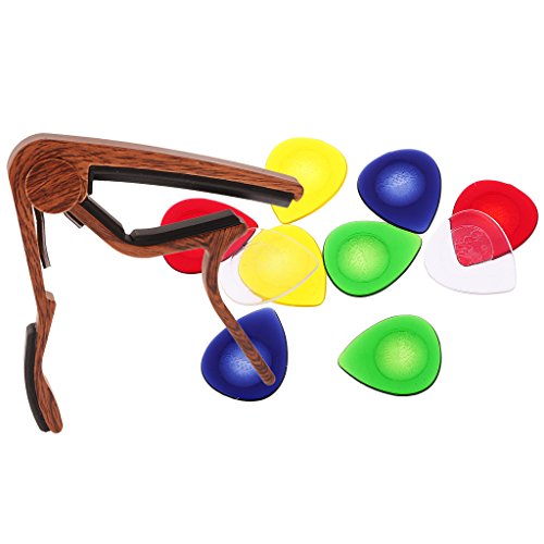 Description: Aluminium alloy rose wood grain design capo perfect fits for folk guitars and most guitars Electric Acoustic guitar picks , light weight, extremely durable, and pleasing to your fingers(Random Color) Precise spring structure design High quality silicone pad, no hurts to trets and no buzzing Quickly and easily released and repositioned Size Chart: Guitar Capo L x W x H: Approx. 80x80x14mm/3.15x3.15x0.55 inch Guitar Pick L x W x T: Approx. 29x25x2mm/1.14x0.98x0.08 inch Package Includes: 1 Piece Guitar Capo 10 Pieces Guitar Picks