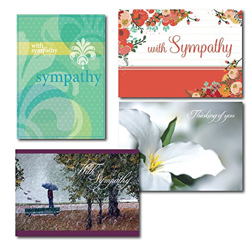 PROFESSIONAL DESIGNS FOR PERSONAL OR BUSINESS USE. This sympathy cards bulk boxed set contains 28 cards...7 each of 4 different sympathy greeting cards offering a variety of colors and subject matter. Send condolences to family, friends or business associates.
