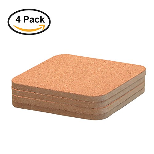 Thirsty Rhino Indah, Cork Coaster With Fiberboard Back, Natural Cork Finish, Set of 4 (Square)