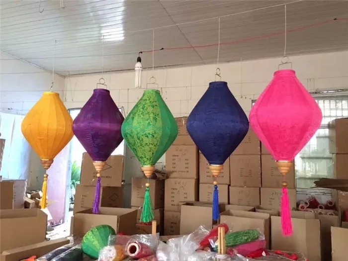 25pcs/lot Chinese Traditional Diamond Jacquard Satin Silk Lanterns Indoor/Outdoor New Year Mall Wedding Party Decorations