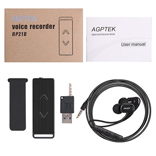 AGPTEK 8GB Clip Digital Voice Recorder Support Lossless Music Playing with HD In-Line Control Earphone, Black