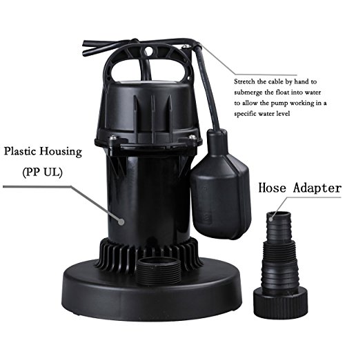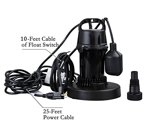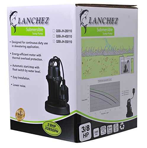 Lanchez Q450110 1/3 HP Multi-Purpose Automatic Thermoplastic Submersible Utility Water Pump With Float Switch for Clean Water