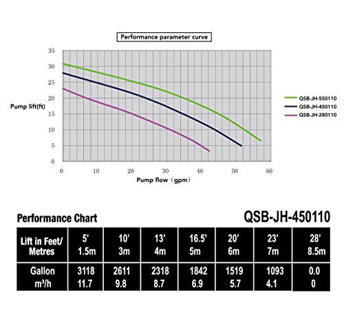 1/3 hp, maximum flow rate is 3118 gallons per hour; Ability to lift water from 17-feet maximum submersible depth to 28 feet high