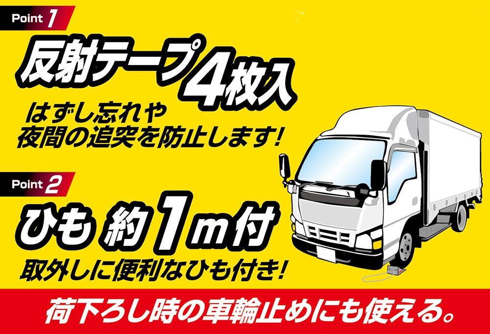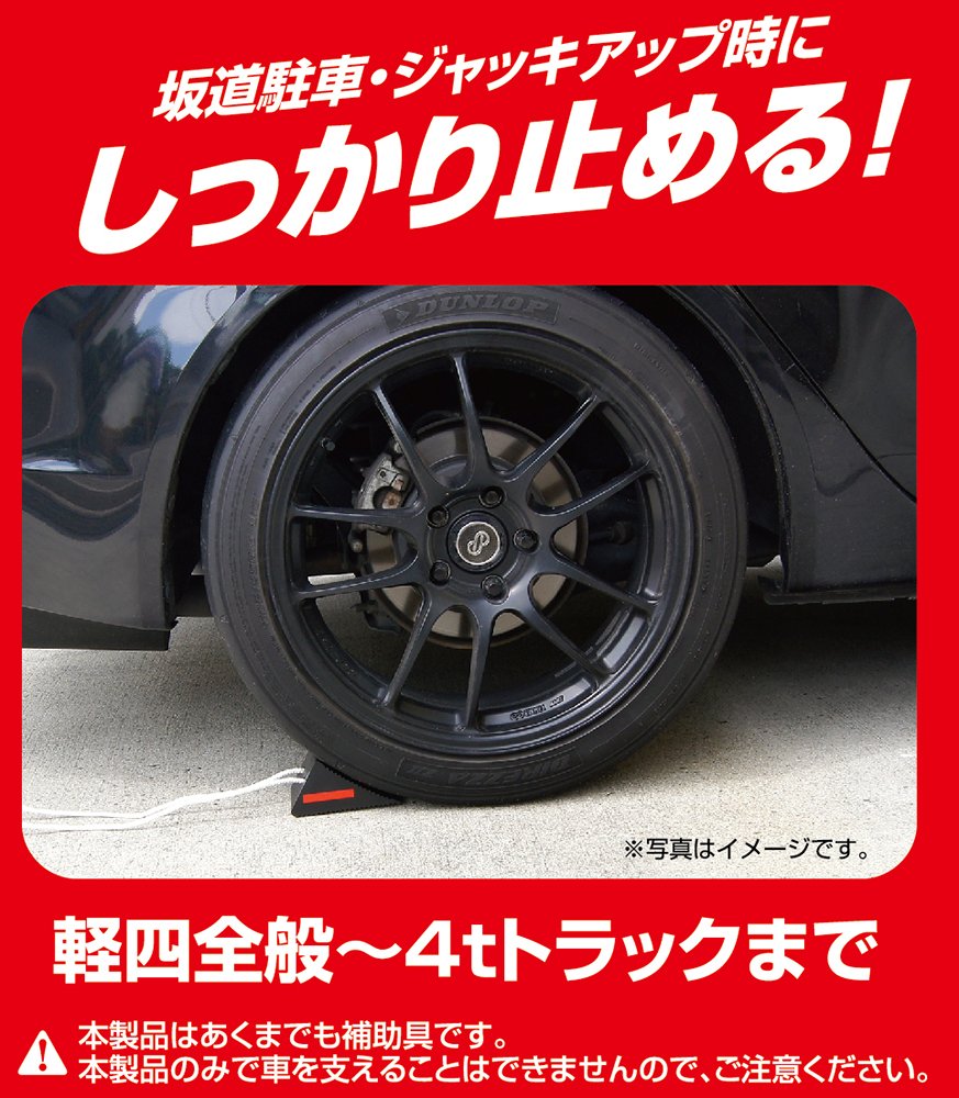 I bought it because the parking lot is a sloping ground. The car is a mini car. Even with only one, even if you pull off the engine with accelerator, it is strong enough to not move in front. Since it has a large handle, it is easy to remove. Even though I roll it off with my foot, it does not sound. It is outstanding to use. # I imitate a ferry stop, I connect two strings so that I can remove two at a time. Convenient.