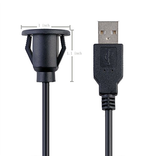 BATIGE USB Male to Female AUX Flush Panel Mount Extension Cable for Car Truck Boat Motorcycle Dashboard -3ft