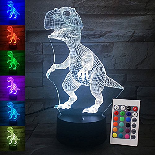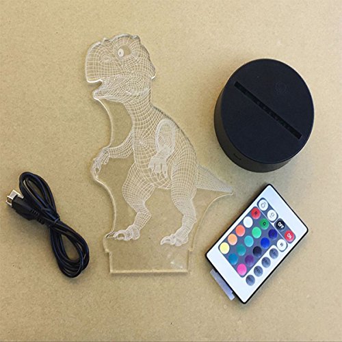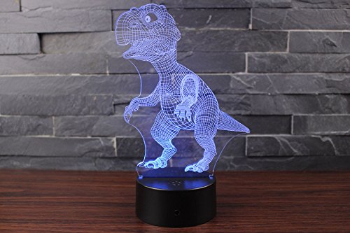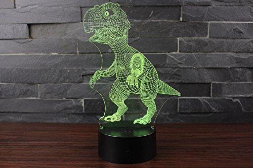 3D Night Light Touch Table Desk Lamp, 7 Colors 3D Optical Illusion Lights with Acrylic Flat & ABS Base & USB Charger for Christmas Gifts(Dinosaur)