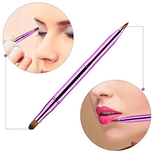 2Pcs Double Sided Lip and Eye Brush with Cap for Travel, Retractable Lip Brush Angled Eye Brow Brush Concealer Brush Portable Cosmetic Brushes