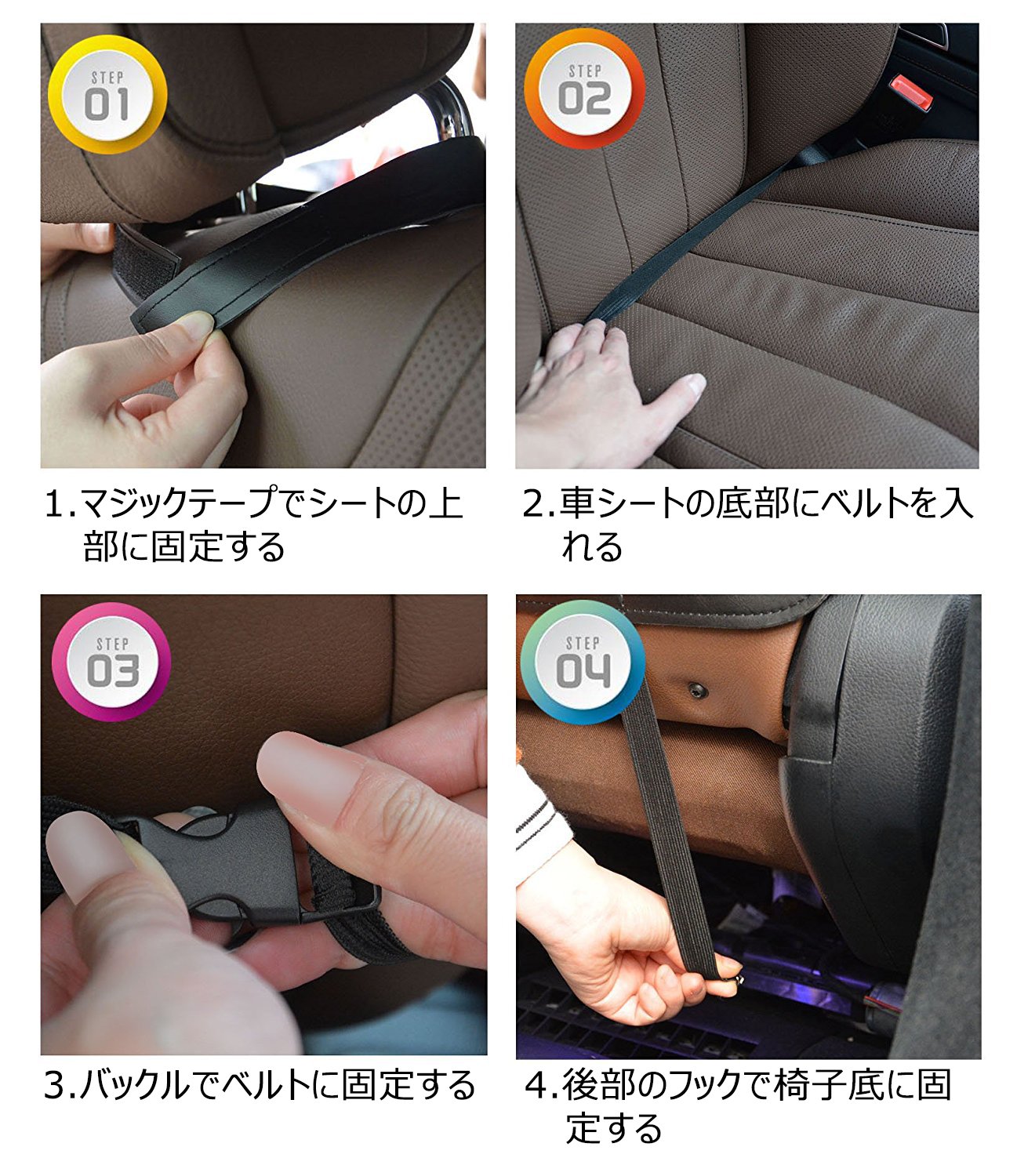 1. Fasten to headrest with Velcro