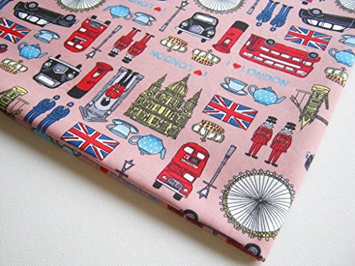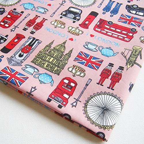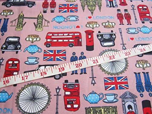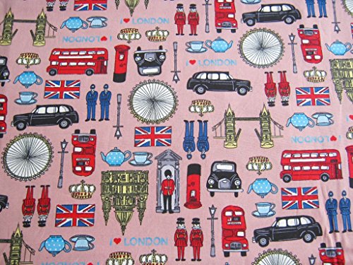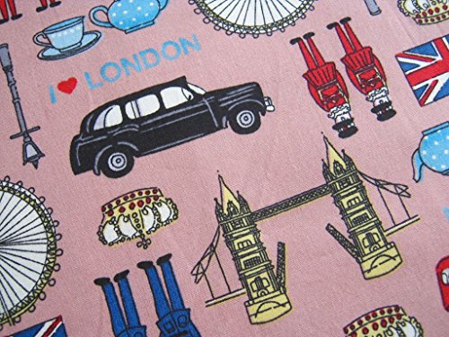 London UK Britain Cotton Fabric, England Attraction United Kingdom Union Jack, Big Ben on Pink 36 by 36-Inch Wide (1 Yard) (FBA-CT277)