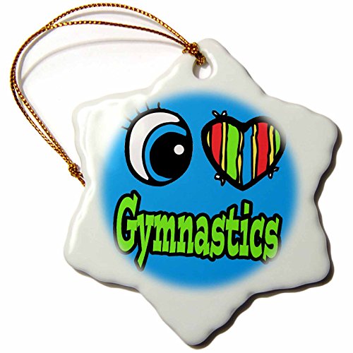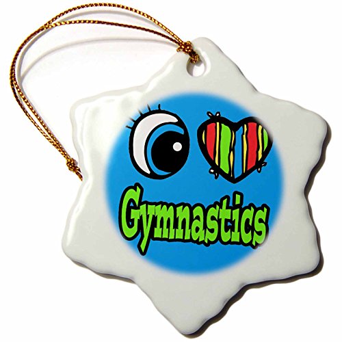 3dRose orn_106144_1 Bright Eye Heart I Love Gymnastics-Snowflake Ornament, Porcelain, 3-Inch