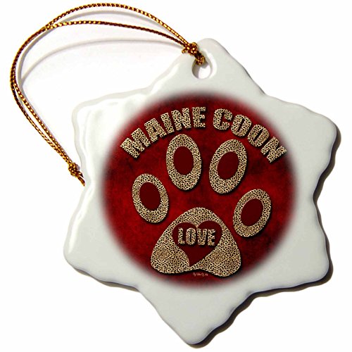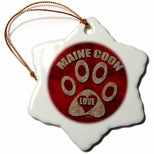 3dRose orn_22006_1 Maine Coon Love Cat Breed in Cheetah Print and Red Snowflake Ornament, Porcelain, 3-Inch
