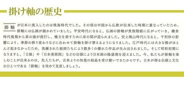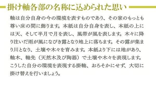 | 素材・材質 | 絵部分素材:美術印刷専用化繊(ポリエステル) 裂地:都緞子 軸先:木 |