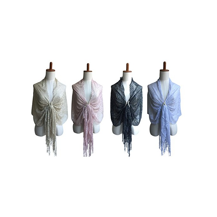 AJMstyle 엘레강트레이스 라메 숄 스톨 펄 건후크 부장미 장미 모티브 fringe 【BWS-292】 레이디스 블랙 골드 실버 핑크 결혼식 파티 피로연 포멀