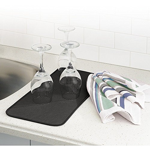 InterDesign iDry Absorbent Kitchen Countertop Dish Drying Mat, Solid - Mini, black/White