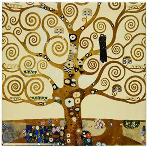 3dRose ct_155632_3 The Tree of Life 1909 by Gustav Klimt Stylish Swirling Branches Brown Fine Art Deco Swirls Ceramic Tile, 8"