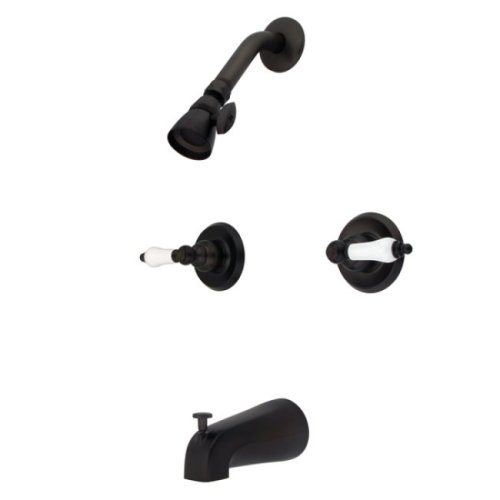 Kingston Brass KB245PL Twin Handle Tub and Shower Faucet with Decor Lever Handle, Oil Rubbed Bronze