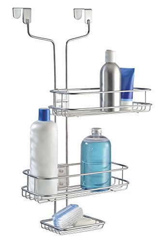 - Shower Caddy with soap tray, 2 adjustable shelves for shampoos, bottles, and razors