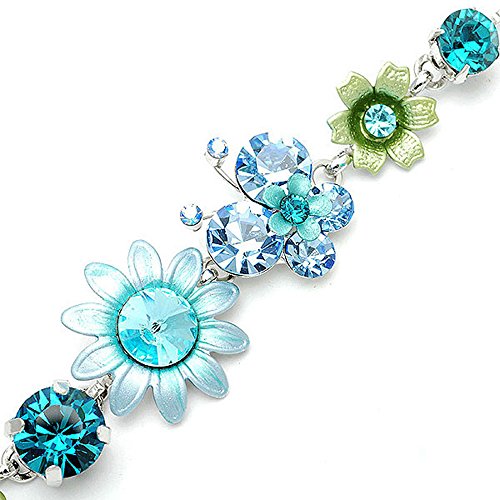 -. Title : Glamorousky Flower and Butterfly Bracelet with Blue Austrian Element Crystals (1083)