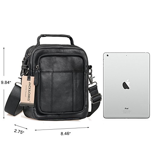 -. Feature : Material: High Quality Leather. / Dimension: 8.46"(Length)* 9.84"(Height)* 2.75"(Width). Perfect size for an iPad Air/ iPad Air 2/ 9.7" iPad Pro / Structure: 1* main pocket, 1* front zipper pocket, 2* rear pocket, 2* slip pocket, 1* adjustable nice strap / Classic style, enough storage for your stuff. Perfect for daily use, business, travel, walk the dog and so on. A ideal gift for all festive occasions. / [Jack&Chris] is a trademark registered in the US,UK and other countries.Any unauthorized sellers will certainly bear the legal consequences of Copyright Infringement. Six months warranty period & Free return shipping.