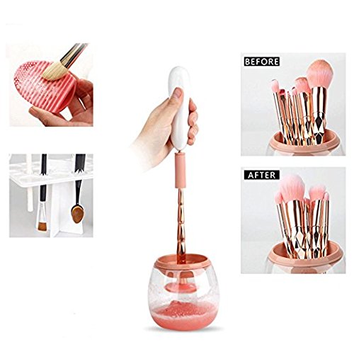 - ✔High Efficient and Easy to Use:Insert the makeup brush into the brush spinner, turn on the power switch, spin to rinse and spin to dry.Cleans and dries brushes in seconds, save you time, money and energy and keep your makeup brushes clean on a regular basis.