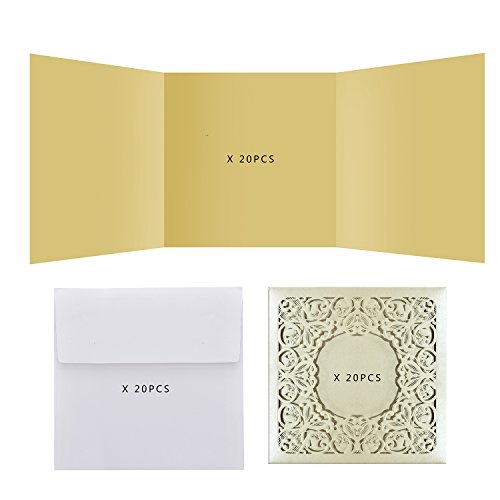 Weddingbob 20Pcs Laser Cut Wedding Invitations Cards Kit for Bridal Shower Dinner with Envelopes and Printable Paper Noble golden square invitation in hollow-carved design (20)