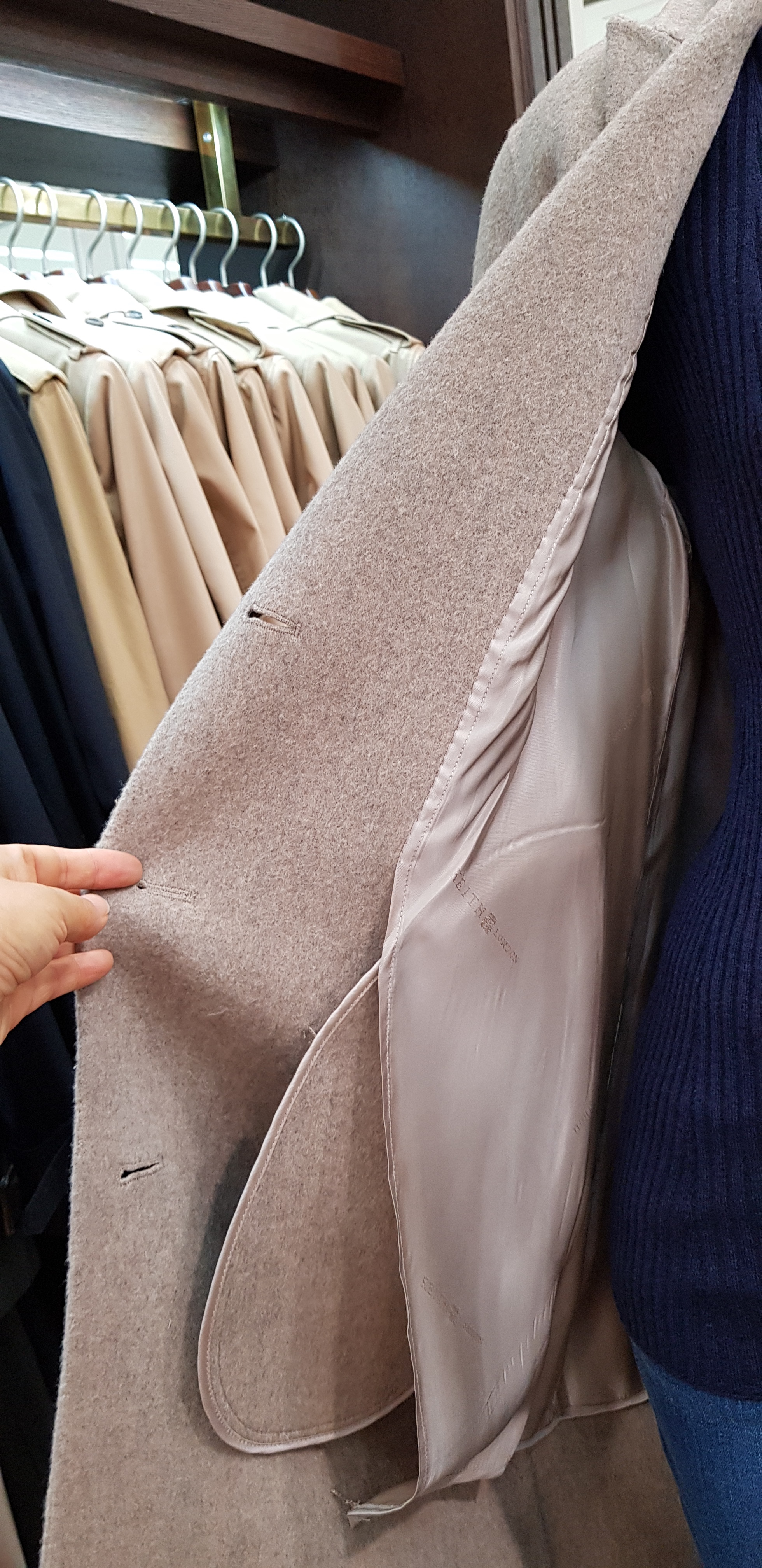 키이스~모와 캐시미어소재의 코트입니다 여유있는핏이라 편하게 착용하기좋으며 기본 테일러카라의 정중함이 있는 핸드메이드의 고급스러움이있는 아이템입니다 총장92센티입니다