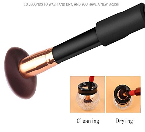 EFFECTIVE:Clean and dry all size makeup brushes thoroughly in just a few seconds. Eight different sizes of rubber holders fits all your makeup brushes perfectly,save your time and money. It effectively and efficiently to removes bacteria, cosmetic residue, dirt and oil on makeup brushes.