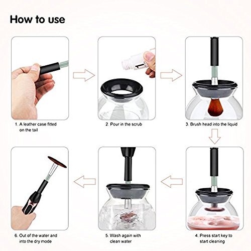EASY: Follow 3 steps to use this brush cleaner: Assemble the spinner with makeup brush; Spin and rinse; Spin to dry it. The clean bowl is plastic material which is not fragile as other glass bowls.