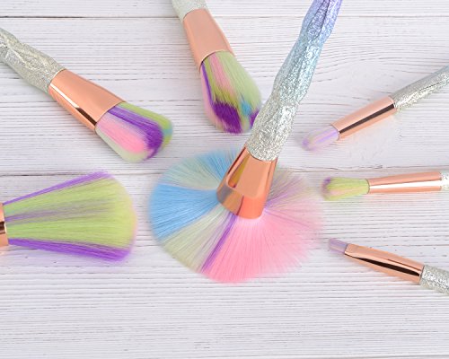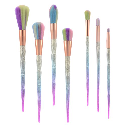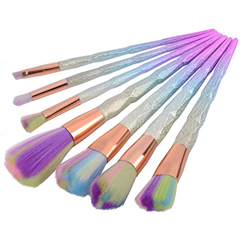 QITAO® 7Pcs Makeup Brush Set Cosmetics Blusher Powder Blending Diamond Handle Colorful hair Thread Rainbow Handle Makeup Brushes Smooth Diamond...