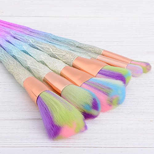 - UNIQUE DESIGN OF MAKEUP BRUSH: Gradient diamond handles, with coloured hairs, creates a gorgeous look for all girls' daily makeup! Own such a colourful makeup brush set would be a best choice of everyone who does makeup.