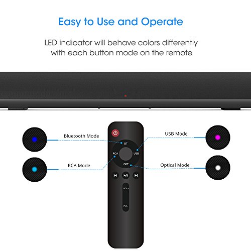-. Feature : Why choose us-we are recommeded store on amazon brand list, all MEGACRA products under 12 month worry free warranty. / 28 Inch Soundbar, nice size with 40Watt speakers drivers provide room-filling sound. / Bluetooth wireless connection for seamless streaming from various devices / Easy compatible, comes with RCA/Optical input port, easy compatible with any brand TV. / Easy to Control and Operate, infrared remote control displays different modes through different colored LED lights.